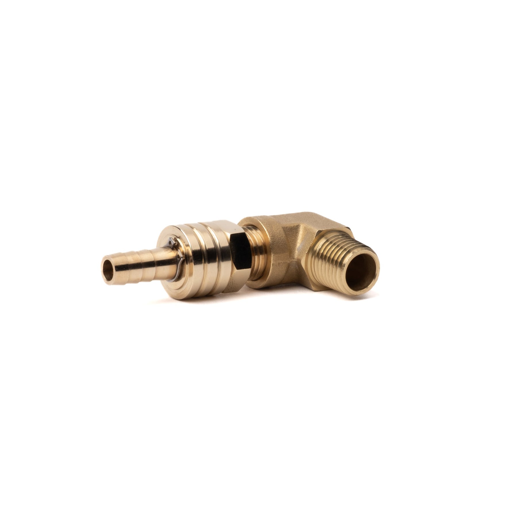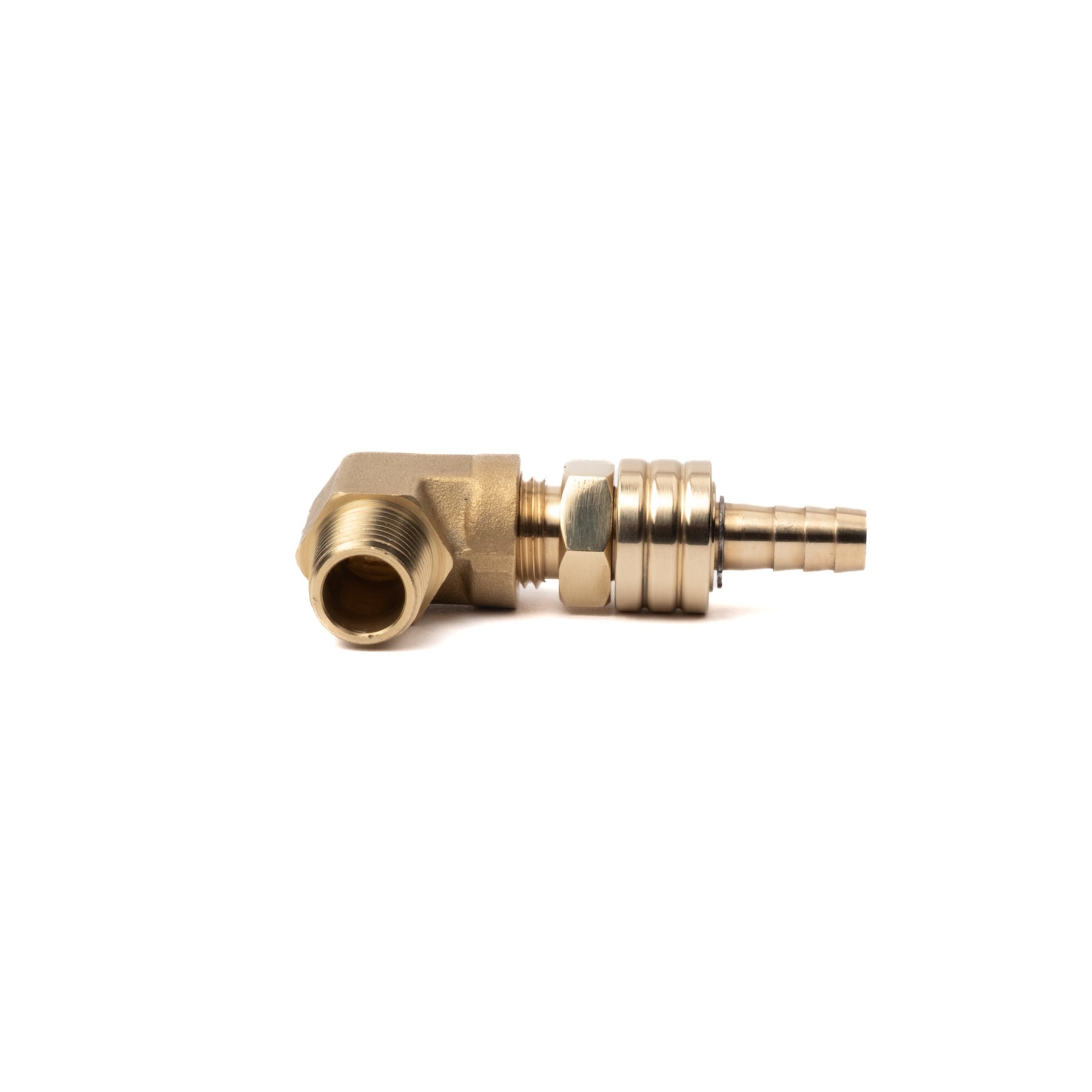 This Prism Petcock adapter features a 3/8" NPT male thread on one end and a 90 degree outlet with a 3/8" NPT female thread. Tested and proven to work with the Prism Supply Petcock, with no modifications necessary. Petcock not included.